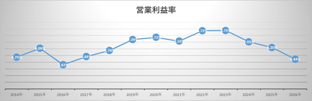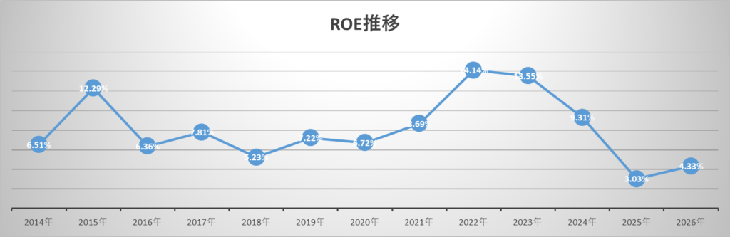 ただし、投資では「今の数値だけで判断する」のではなく、なぜその水準になっているのかという背景を理解することが大切です。直近の数値が低下している背景については後述します。