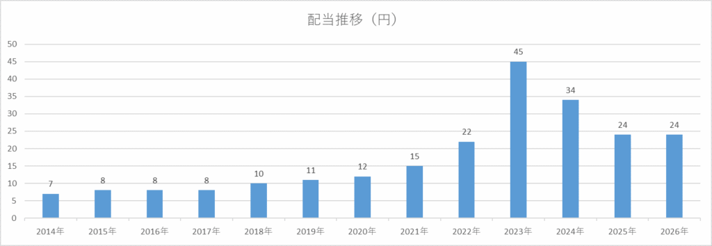 2026年4月9日時点の予想配当利回りは3.02%です。 高配当株として名前が挙がる銘柄の中では、そこまで高い水準ではありません。配当だけを最優先にしたい方には物足りなく感じるかもしれません。